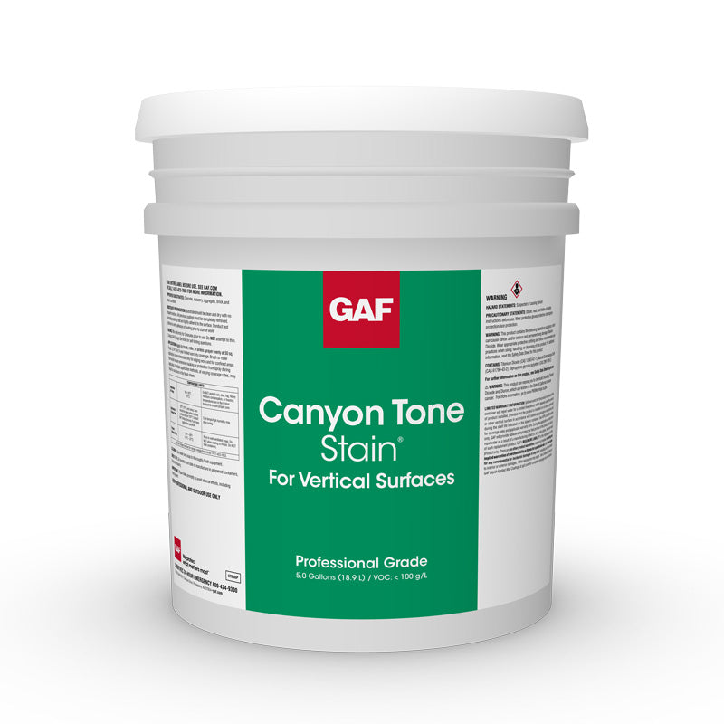 Liquid-applied GAF CanyonTone Stain corrects natural color imperfections in the substrate by imparting permanent color uniformity plus excellent water repellency without disturbing the natural texture of the substrate.