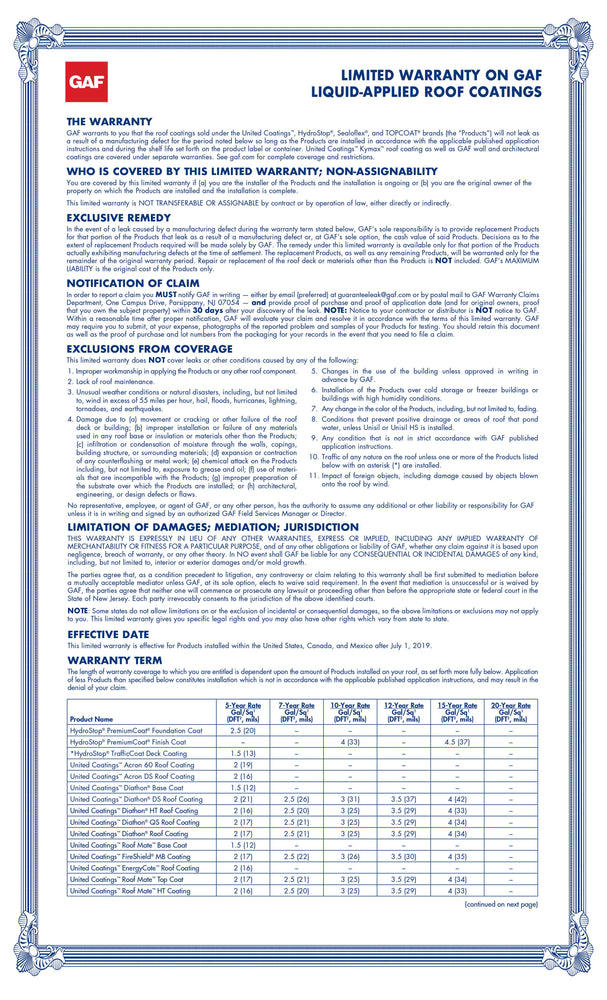 • UL Listed as a Class “A” Fluid-Applied Coating System
